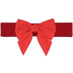 Elerevyo 弾性 ワイドベルト 女性ァッションドレス蝶ネクタイウエストバンド装飾 多用途ベルト レッド 適合ウエスト周囲径:81.0-100.0