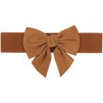 Elerevyo 弾性 ワイドベルト 女性ァッションドレス蝶ネクタイウエストバンド装飾 多用途ベルト ブラウン 適合ウエスト周囲径:96.0〜115.