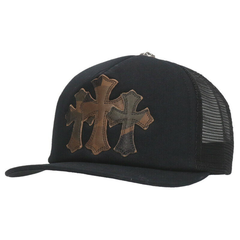 クロムハーツ Chrome Hearts サイズ:OS TRUCKER CAP CEME レザーセメタリークロスパッチキャップ帽子(ブラック)【201152】【OK15】【小物】【中古】bb78#rinkan*A