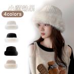 バケットハット ファーハット ニット帽子 レディース 秋 冬 ニット 編み ハット 帽子 ファー帽子 バケハ バケットハット 深め ふわふわ もこもこ お洒落 高級感
