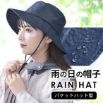 レインハット バケットハット レディース 撥水 防水 自転車 ネイビー あごヒモ付 つば広 厚手 丈夫 雨の日 帽子 レインウェア 通勤 通学 送り迎え