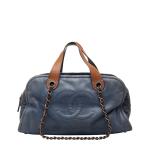 シャネル マトラッセ ココマーク インザミックス ハンドバッグ チェーン ショルダーバッグ ブルー ブラウン レザー CHANEL 【中古】