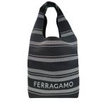 FERRAGAMO フェラガモ「未使用品」ジャガード ロゴ ボーダー ラージ トートバッグ (4977)