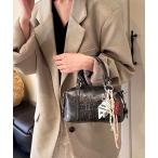 ボストンバッグ チャーム付スエード調ミニボストンバッグ レディース