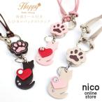 Happy リール キーホルダー ちび ねこ バッグチャーム 本革 日本製 レディース かわいい おしゃれ バッグ ストラップ キーリング ic id カード パスケース