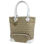 フェンディ FENDI ズッキーノ柄 トートバッグ ハンドバッグ ロゴ トートバッグ キャンバス ベージュ ホワイト 8BH139 レディース 中古