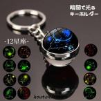キーホルダー キーリング バッグチャーム 12星座 十二星座 宇宙 球体 丸型 蛍光 蓄光 光る 暗闇 シンプル おしゃれ かわいい バリエーション豊