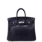 エルメス バーキン25 ブルーマリン/シルバー金具 アリゲーターマット X刻印 HERMES Birkin ハンドバッグ 【安心保証】