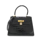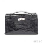 エルメス HERMES ポシェットケリー ミニ ハンドバッグ アリゲーターリセ ブラック シルバー金具 □M刻印 レディース 中古