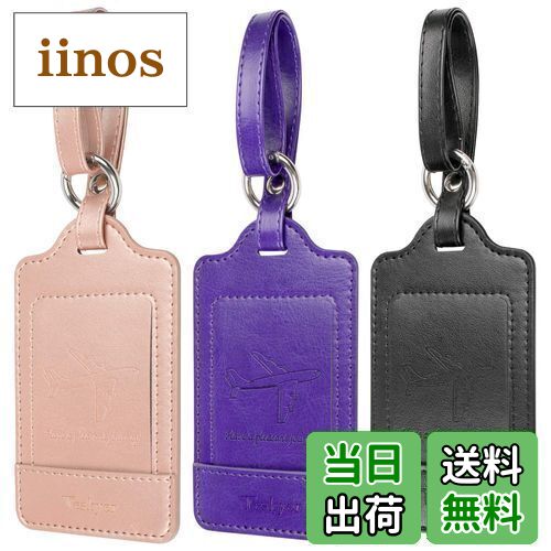 【送料無料】Teskyer 荷物タグ ネームタグ スーツケースタグ 出張用タグ 番号札 バッグ用ネームタグ レザー 旅行タグ トラベル用 旅行手荷物 ラベル 紛失防止 三枚入り(ブラック+ローズゴールド+パープル)