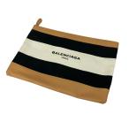 バレンシアガ BALENCIAGA ネイビークリップクラッチバッグ ベージュ×ブラック×ブラウン サイズ:-