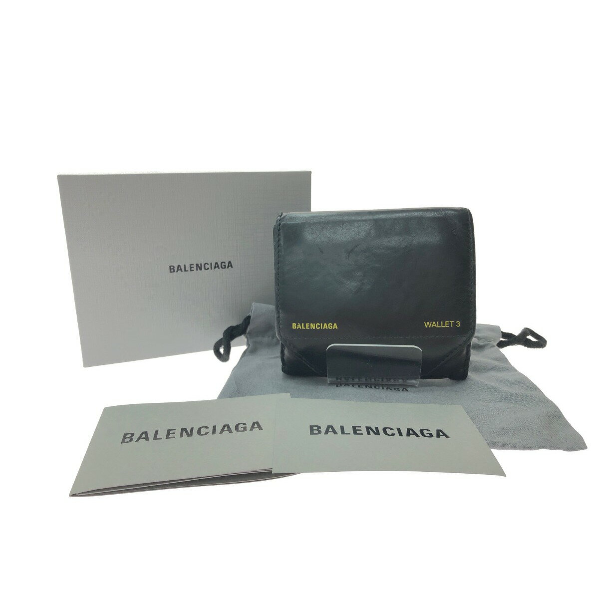 【中古】バレンシアガ BALENCIAGA ペーパーミニウォレット 財布 三つ折り レザー ロゴ 黒 ブラック /XZ ■OH ■GY18 レディース 【ベクトル 古着】 250813