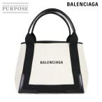 新品同様 バレンシアガ BALENCIAGA ネイビー カバ スモール トート バッグ キャンバス レザー ホワイト ブラック 339933 90310991