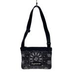 Supreme◆バンダナ柄サコッシュ/ショルダーバッグ/BLK/ロゴ黄ばみあり/21SS