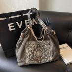 刺繍 エコバッグ バンダナ柄 大容量 防水 ナイロンバッグ 持ち手幅広 ショルダー ショッピングバッグ おしゃれ 人気