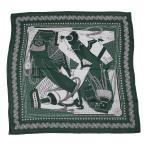 エルメス カレジェアン 140 ショール スカーフ 朝の散歩 バンダナ ナチュラル グリーン 黒 h-g769