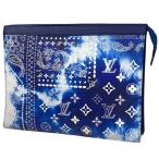 ルイ・ヴィトン Louis Vuitton ポシェット ヴォワヤージュ MM バンダナ セカンドバッグ クラッチバッグ モノグラム ブルー M81442 レディース 中古