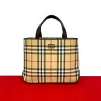 バーバリー BURBERRY チェック柄 ハンドバッグ トートバッグ ロゴ ハンドバッグ キャンバス ベージュ ブラウン レディース 中古 在庫一掃