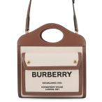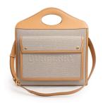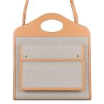 (未使用 展示品)BURBERRY バーバリー 8039362 ミディアム ポケットバッグ コットンキャンバス カーフスキン ナチュラル モルトブラウン ハンドバッグ
