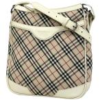 バーバリー BURBERRY チェック柄 ショルダーバッグ 斜め掛け ロゴ ショルダーバッグ キャンバス ベージュ ホワイト レディース 中古