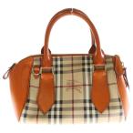 BURBERRY バーバリー ロゴ ノバチェック ハンドバッグ オレンジ×ベージュ レザー