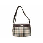 バーバリー ノバチェック ショルダーバッグ ベージュ ブラウン キャンバス レザー レディース BURBERRY 【中古】