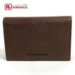 美品 BURBERRY バーバリー ロゴ 2つ折り フラップ 名刺入れ パスケース 内側チェック柄 カードケース ブラウン ユニセックス【中古】