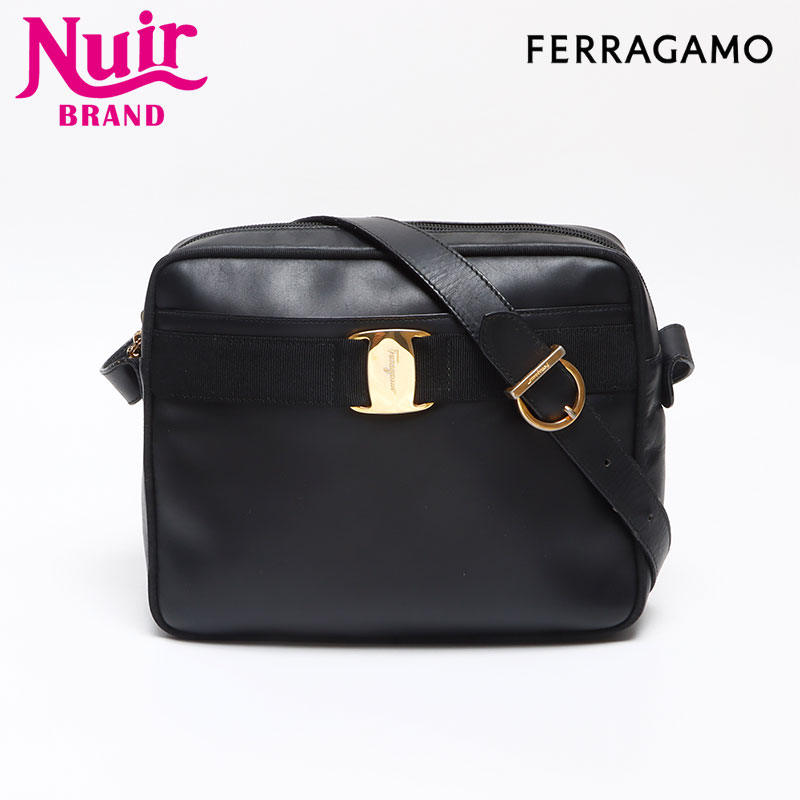 【全商品21%OFF!11/30 23:59まで】サルヴァトーレフェラガモ Salvatore Ferragamo ヴァラ レザー ゴールド金具 ショルダーバッグ ブラック WS13544 【中古】