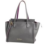 サルヴァトーレフェラガモ Salvatore Ferragamo ガンチーニ トートバッグ ショルダーバッグ トートバッグ レザー グレー パープル F216 レディース 中古