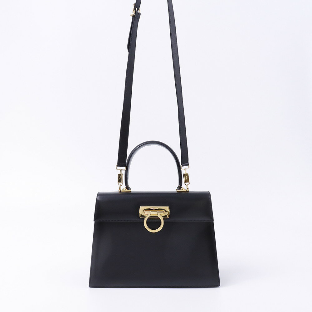 Salvatore Ferragamo サルヴァトーレフェラガモ AF-21 2WAY ガンチーニ カバン ショルダーバッグ ハンドバッグ レザー レディース ブラック 【中古】