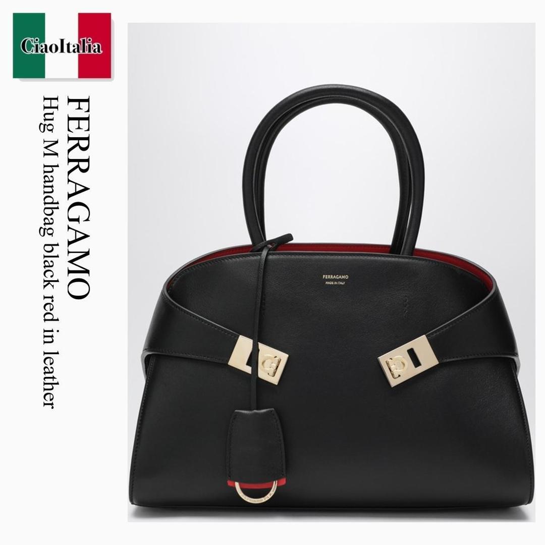 【数量限定・在庫限り・早い者勝ち!】 フェラガモ / かばん / カバン / Ferragamo Hug M Handbag Black Red In Leather / 767814 / 767814 NF / 767814NF / ハンドバッグ
