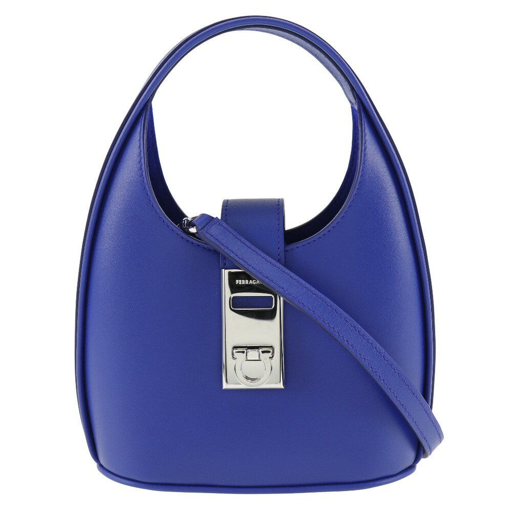 【スーパーセール10%OFF対象】サルヴァトーレフェラガモ Salvatore Ferragamo ホーボーミニバッグ ハンドバッグ ガンチーニ 2WAYショルダー カーフ イタリア製 青 斜め掛け 手提げ 2way フラップ Hobo Mini Bag レディース【中古】A+ランク