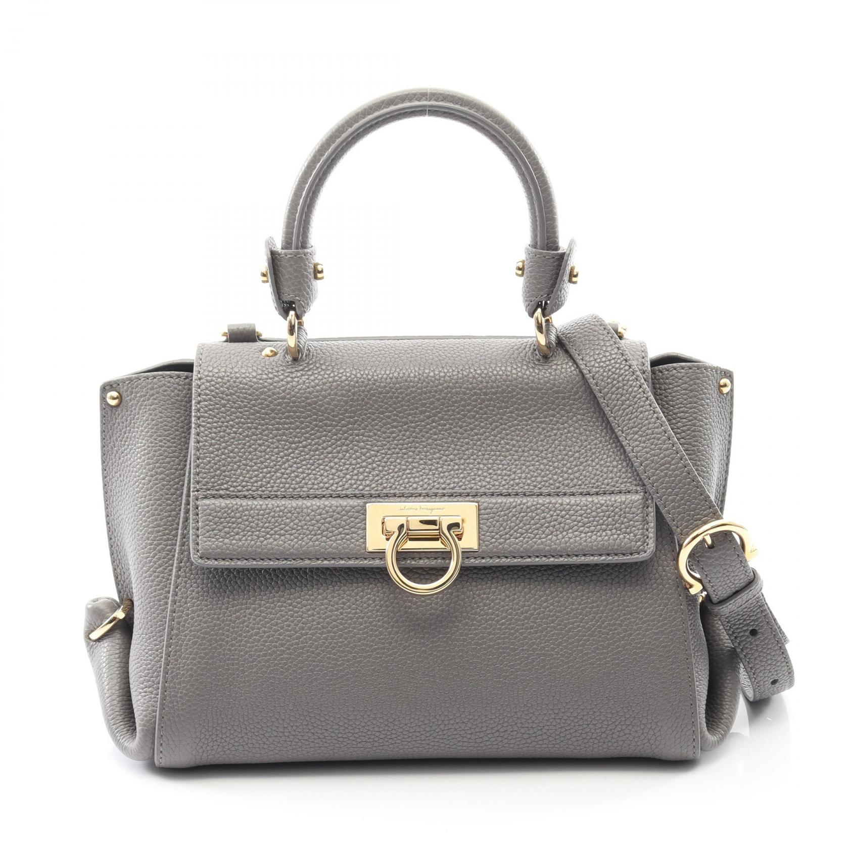 ◆全品5%OFFクーポン対象◆サルヴァトーレフェラガモ Salvatore Ferragamo ソフィア ガンチーニ ハンドバッグ バッグ レザー レディース グレー系 FZ-21/F628 【中古】