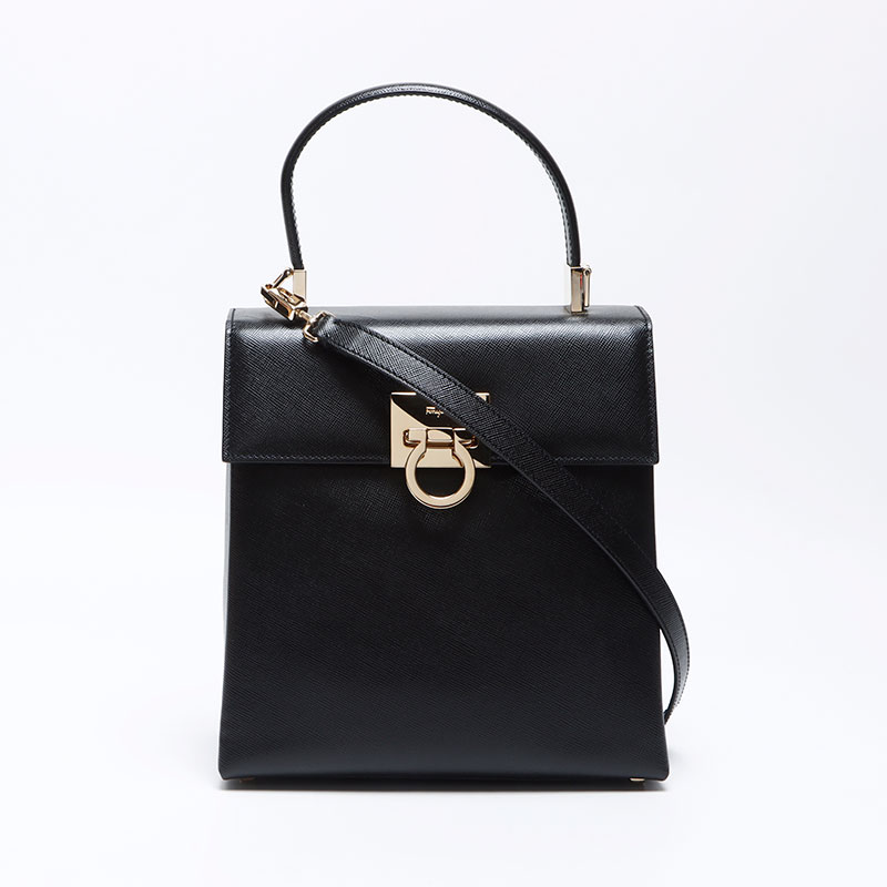 【スーパーSALE★10%OFF】フェラガモ ハンドバッグ FERRAGAMO ガンチーニ 214446 772236 レディース ブラック