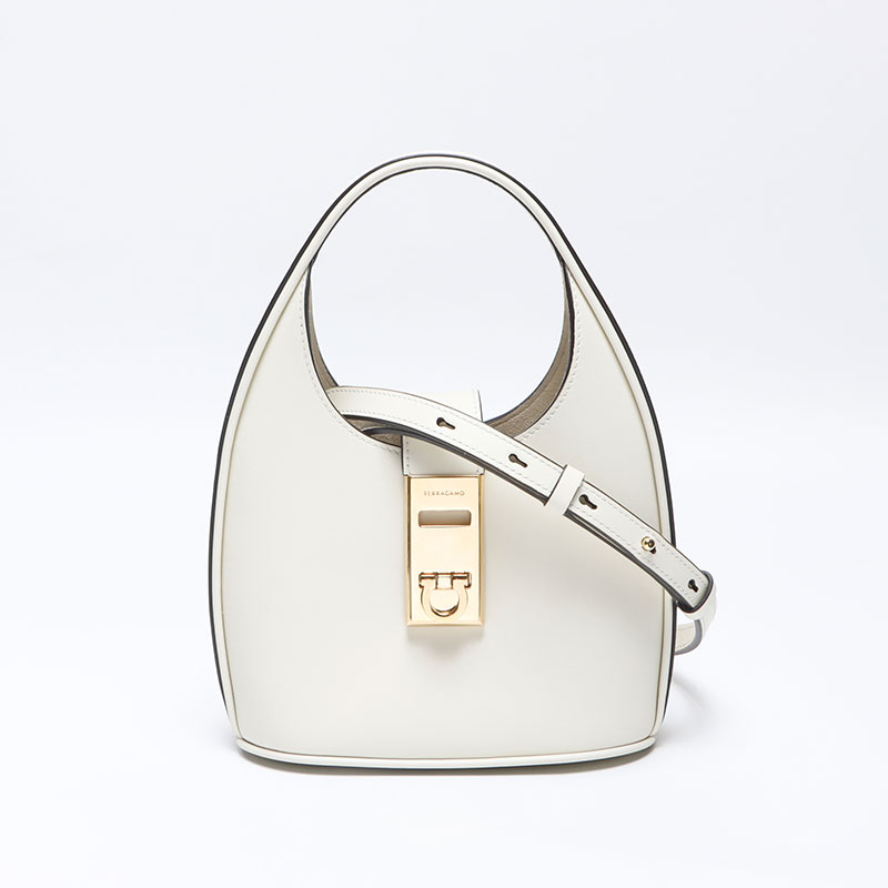 【全商品21%OFF!11/30 23:59まで】サルヴァトーレフェラガモ Salvatore Ferragamo ガンチーニ バックル ホーボー ハンドバッグ ホワイト WS14471 【中古】