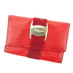 【週末タイムSALE★30%OFF】サルヴァトーレ フェラガモ キーケース レディース リザード調 ヴァラ レッド ゴールド 中古