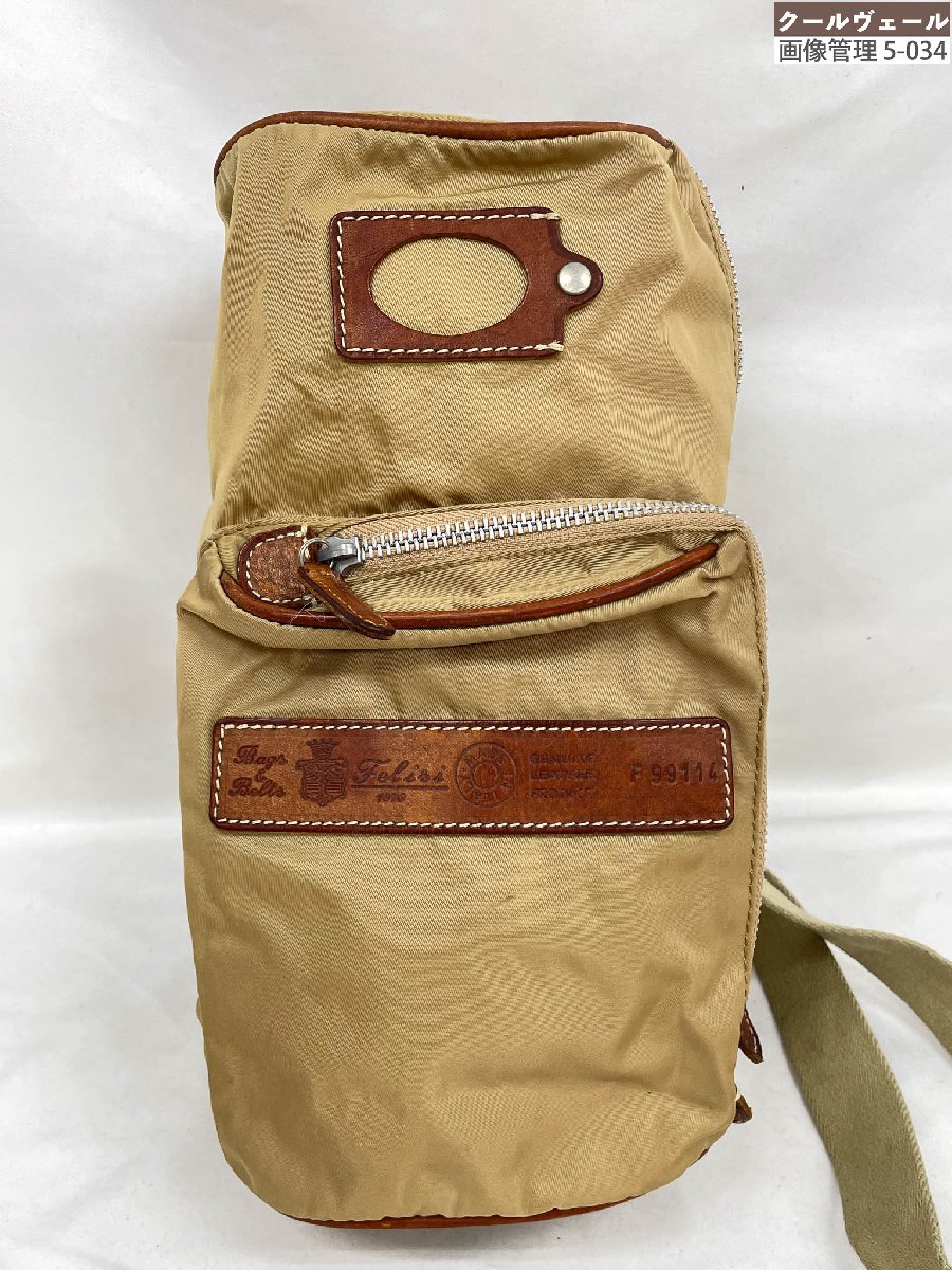 【フェリージ Felisi】 F99114 ナイロン クロスボディーバッグ ワンショルダーバッグ (メンズ) ベージュ系 ◇5MG3160◇【中古】