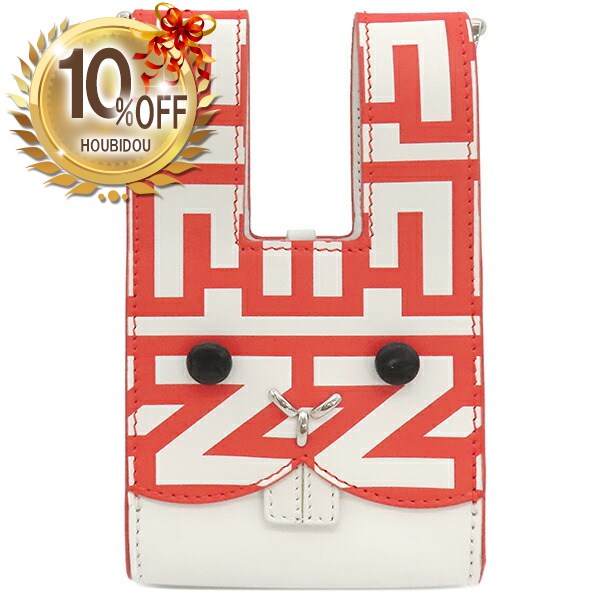 \10%OFFセール/ フェンディ FENDI ショルダーバッグ BUSTINA BUNNY レザー レッド×ホワイト シルバー金具 マークジェイコブス コラボ バニー ウサギ 赤 白 7AS169 【保存袋】【中古】