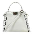 FENDI フェンディ ピーカブーミニ 2WAYショルダーバッグ ホワイト×シルバー金具 レザー 8BN244