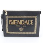 美品 フェンディ × ヴェルサーチ フェンダーチェ レザー セカンドバッグ クラッチ ポーチ ブラック ゴールド メンズ RWM DU21-7