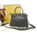 FENDI フェンディ ハンドバッグ PEEKABOO SELLERIA ピーカブー セレリア レギュラー 8BN290 アスファルト グレー シルバー金具 イタリア製 中古 美品