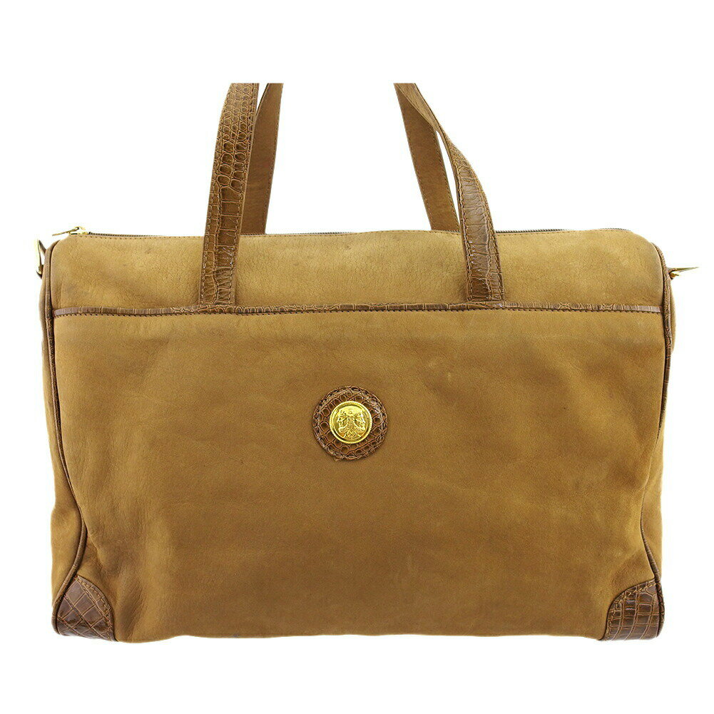 【Fashion Special Fair 30%OFFクーポン】フェンディ ハンドバッグ クロコ調コンビ コインモチーフ ベージュ ブラウン レディース 中古 FENDI ブランド ハイブランド ヴィンテージ