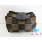 フェンディ FENDI ポーチ ブロック チェック PVC レザー 茶 カーキ ロゴ アクセサリー 化粧 コスメ ヴィンテージ 小物 【中古】 bc1726