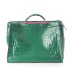フェンディ クロコダイル オーストリッチ メイド トゥ オーダー品 ピーカブー トートバッグ エメラルドグリーン【中古】