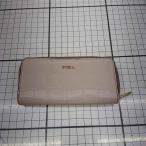 ◇ Θ フルラ FURLA クロコ型押しレザー ラウンドファスナー キーケース ベージュ系 レディース E