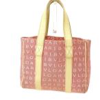 ブルガリ トートバッグ ハンドバッグ レディース ロゴマニア レッド×ベージュ 中古