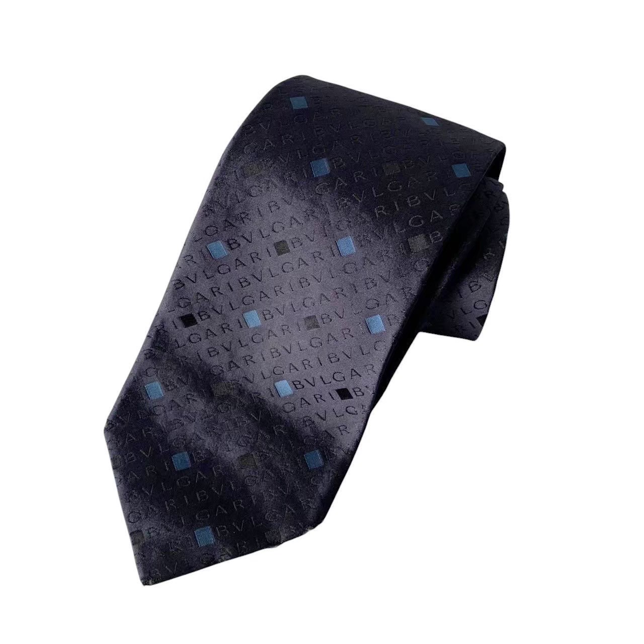 「中古」BVLGARI ブルガリ ネクタイ ブランド 小物 スーツ ファッション ネイビー ブルー シルク イタリア製 ロゴ 総柄 光沢感 紳士 メンズ