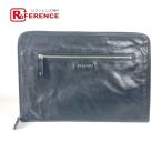BVLGARI ブルガリ ロゴ ラウンドファスナー カバン ポーチ クラッチバッグ ブラック メンズ【中古】