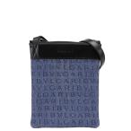 ブルガリ ロゴマニア ショルダーバッグ ブルー ブラック キャンバス レザー レディース BVLGARI 【中古】