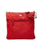 プラダ 三角ロゴプレート テスート ショルダーバッグ BT0715 レッド ナイロン レザー レディース PRADA 【中古】